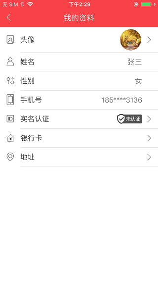 1. 在我的资料里面进行实名认证和添加银行卡信息