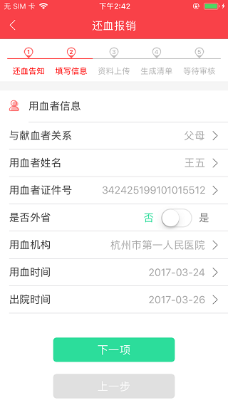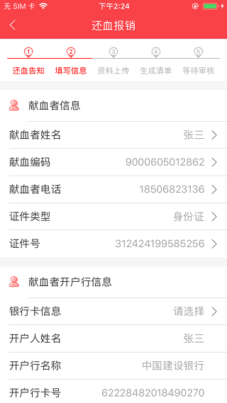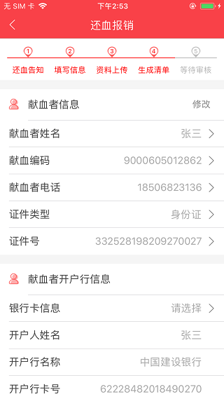 b. 填写献血者和用血者相关信息(注意:献血编码必须是本人献血后对应的献血编码)