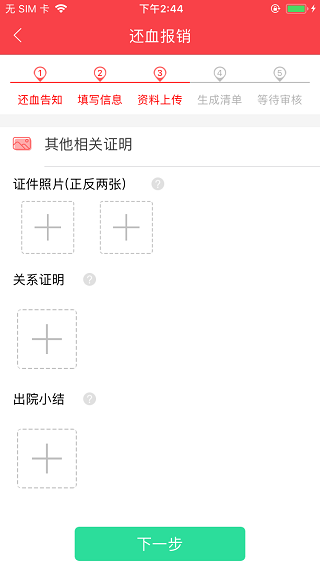 2. 完成第一步之后, 可在服务窗里面进行还血报销申请