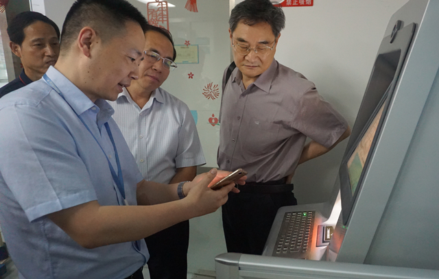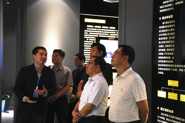 吴明一行先后考察参观了吴山献血屋、滨江献血服务大厅、制备供应科、血液中心陈列室等;胡伟主任介绍了献血服务网点建设规划、献血服务信息化建设、血液储存发放自动化建设等情况,并向来宾演示支付宝刷脸献血自助登记系统操作。