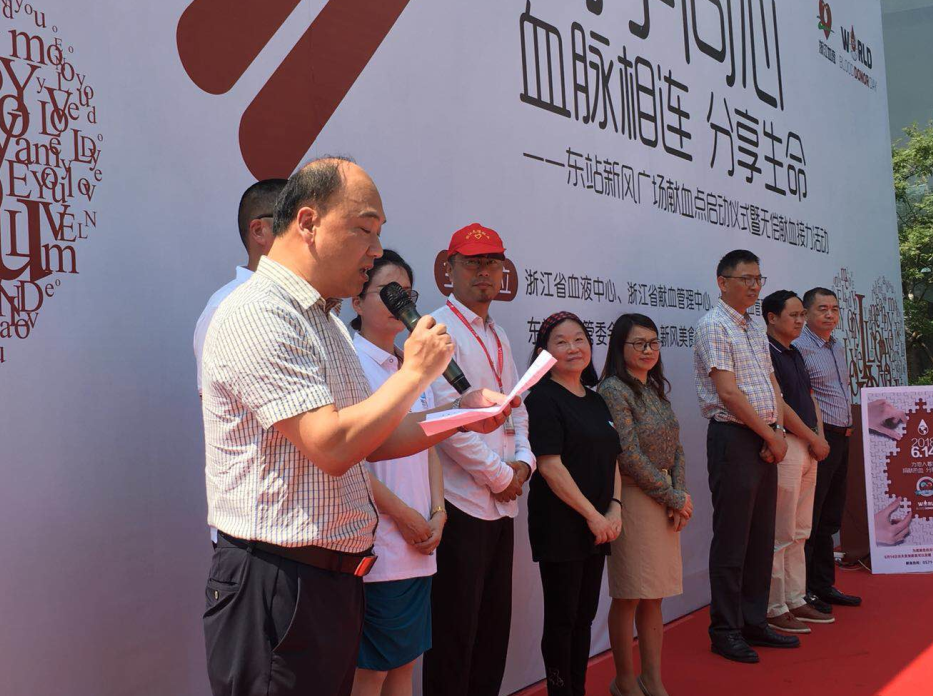 今天下午14:00,“携手同心 血脉相连 分享生命——无偿献血接力活动暨东站新风广场献血点启动仪式”在新风生活广场拉开帷幕。www.48365365.com党委书记陆新成、东站枢纽管委会党工委委员、经济产业综合党委书记顾友良、杭州市献血管理中心主任洪丽冰、浙江省献血管理中心综合办主任罗建根、浙江省无偿献血志愿者协会副会长金黛华、陈雷,坤罡集团杭州CEO朱志鑫、君玺商会慈善总裁吴红华、副总裁戴志康、金尧飞以及东站枢纽管委会及同心圆单位党员干部、各爱心企业无偿献血者、新闻媒体等近百人出席了活动。