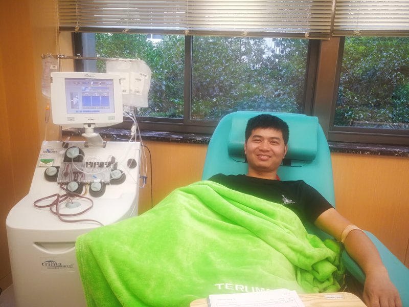 5点40左右,胡雪平第一个赶到省血液中心,并顺利通过体检、初筛,第一个上机捐献。