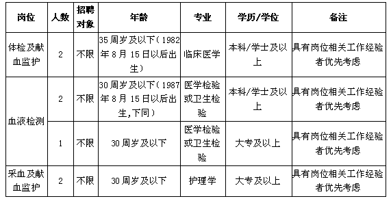 3.根据卫生部有关规定,患有经血传播疾病(含乙肝)的人员不得报考“采血及献血监护”岗位。