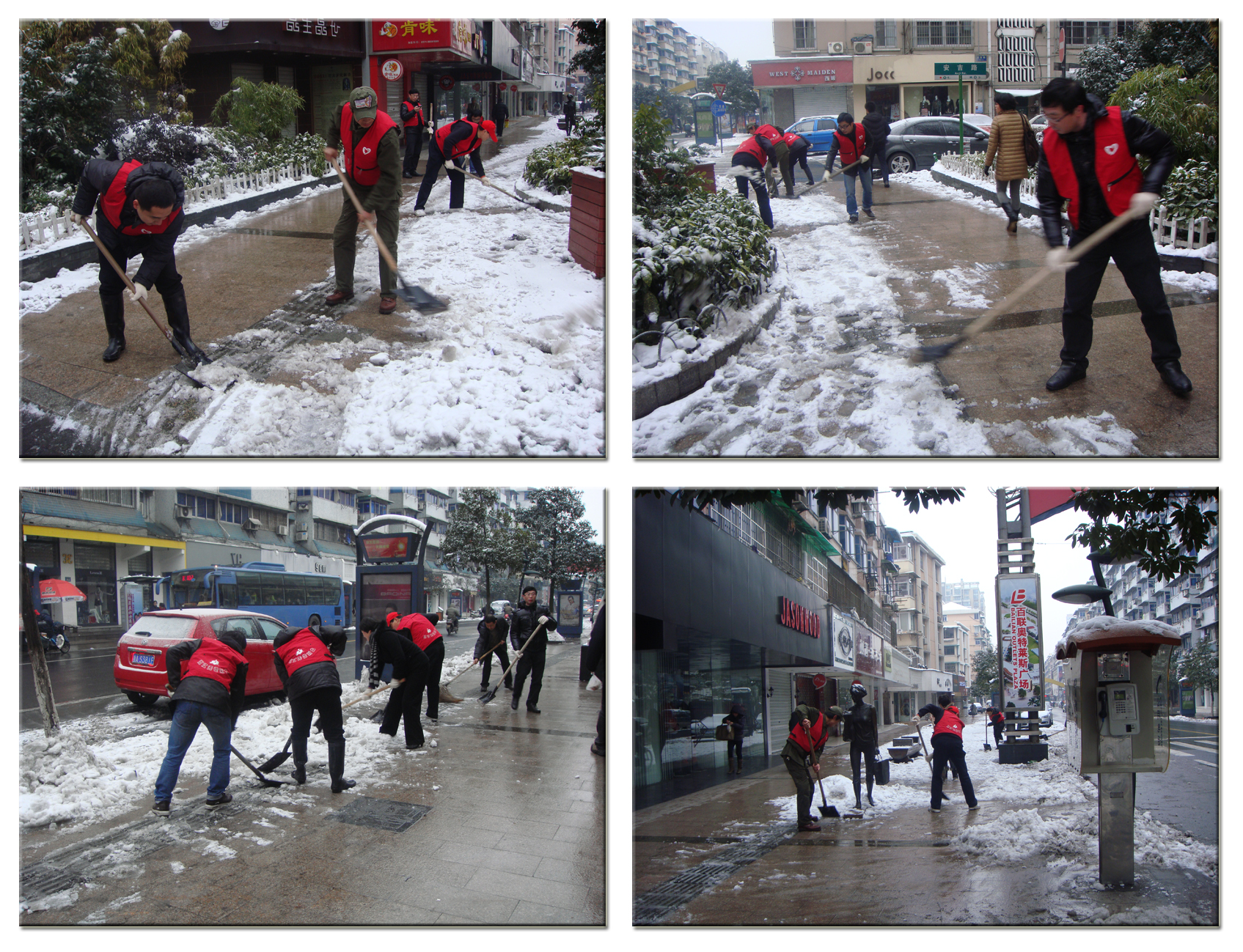 1月份全省范围大面积持续的雨雪冰冻天气,给部分群众的生产生活带来了很大困难。浙江省无偿献血志愿者协会积极响应省委、省政府、团省委关于抗击雨雪灾害的重要指示,在1月20日组织动员广大志愿者积极投身雨雪灾害,走上街头铲雪、扫雪。