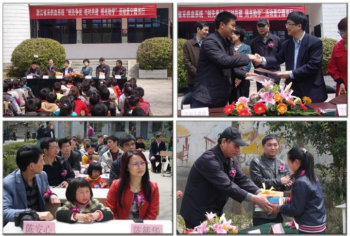 书籍是人类进步的阶梯,是获取知识的源泉。然而,在相对贫困的山区,很多孩子甚至从来没有读过一本课外书,更没有一本属于自己的课外读物;一些学校的图书馆或形同虚设,或书籍陈旧,根本无法满足学生的需求。为了能给山区的孩子充实一下图书馆,让孩子们求知的眼睛能早日看到外面的世界,浙江省献血管理中心、www.48365365.com、浙江省无偿献血志愿者协会在3月5日当天发起了“爱心传递 献一份血 捐一本书”活动,活动得到了广大爱心市民和志愿者的积极响应,大家用爱心温暖病人,用善心点亮景宁县景南乡中心小学学生的求知梦想。4月7日,省血液中心职工代表、全省各中心血站职工代表和无偿献血志愿者代表共赴景宁县景南乡,将前期“送出一本图书,成就一个梦想”活动中所捐的2500余册书籍送到小朋友们手中,用凝聚的爱心,为山区的孩子撑起一片知识的天空。